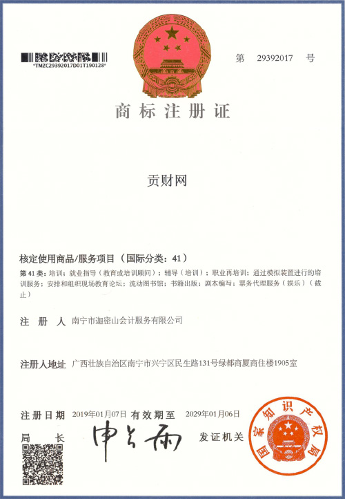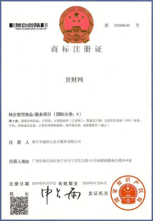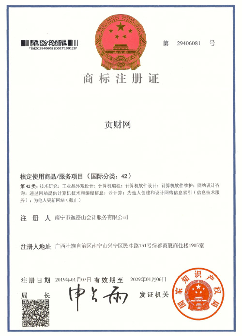 迦密山工商注冊(貢財41類)