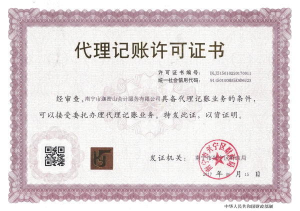 迦密山代理記賬許可證書